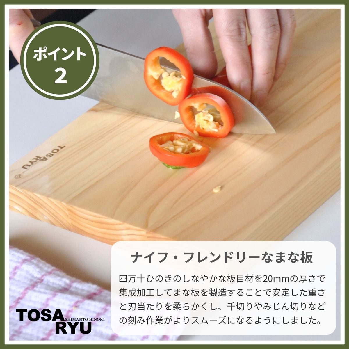 刃当たりの良いヒノキのまな板